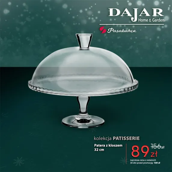 Patera szklana o wielkości 32 cm na nodze z kloszem za 89 zł