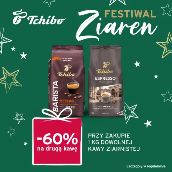 Przygotuj się na prawdziwą kawową ucztę, teraz przy zakupie 1 kg kawy drugą kawę kupisz z rabatem 60%. Bez względu na to, czy wolisz delikatną nutę czekolady, czy też aromaty prażonych orzechów lub owoców tropikalnych w Tchibo znajdziesz swój smak! Szczegóły w regulaminie u doradcy.