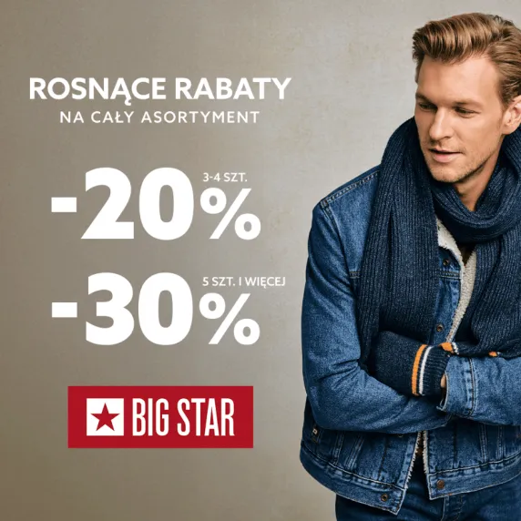 ROSNĄCE RABATY w BIG STAR! Przy zakupie 3 szt. – 4 szt. rabat 20%, 5 szt. i więcej rabat 30%.